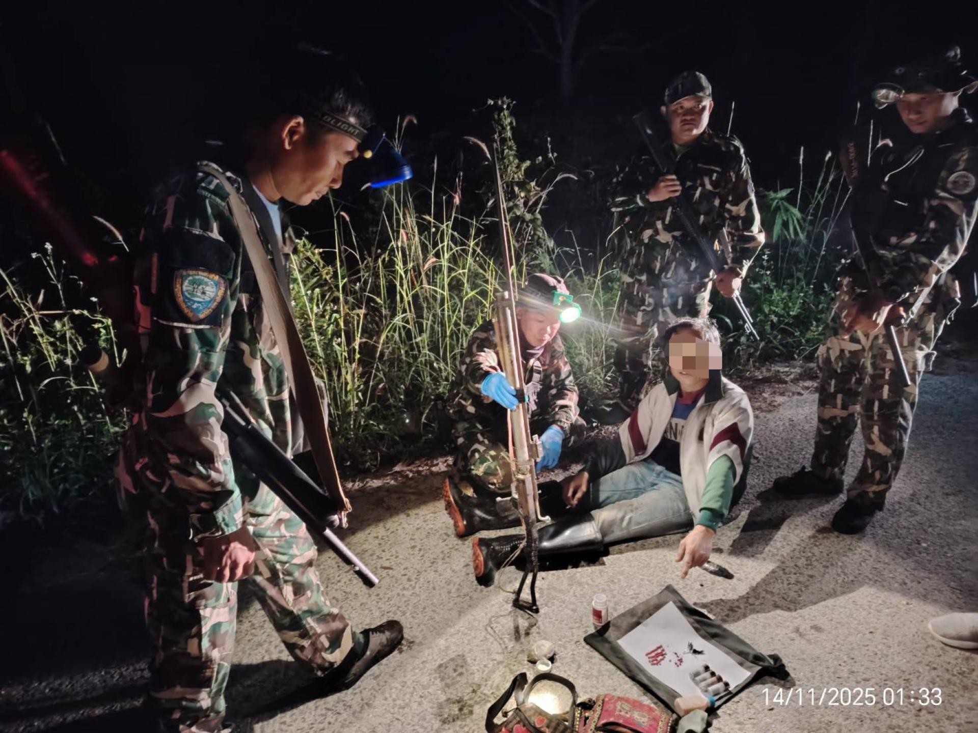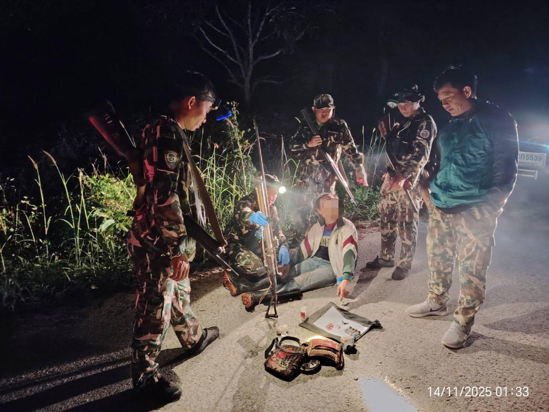 14 พฤศจิกายน 2568 หน่วยพิทักษ์ฯ ดล.5(ปางอ้อย)และสายตรวจฯ อุทยานแห่งชาติดอยหลวงร่วมออกลาดตระเวนเชิงคุณภาพ(Smart Patrol) บริเวณท้องที่บ.ห้วยม่วง ม.10 ต.แม่สรวย อ.แม่สรวย จ.เชียงราย ตรวจพบการกระทำผิดกฎหมาย พร้อมจับกุมผู้ต้องหา 1 คน และตรวจยึดของกลางประกอบด้วย 1. อาวุธปืนอัดลมไทยประดิษฐ์ ไม่มีหมายเลขทะเบียน จำนวน 1 กระบอก พร้อมลูกกระสุนปืนเหล็ก จำนวน1 ขวด 2. กระสุนปืนลูกซอง ขนาดเบอร์ 12 จำนวน จำนวน 4 นัด 3. ยาเสพติดให้โทษประเภท 1(ยาบ้า) จำนวน 40 เม็ด และได้นำเรื่องร้องทุกข์กล่าวโทษต่อ พงส.สภ.แม่สรวย จ.เชียงราย