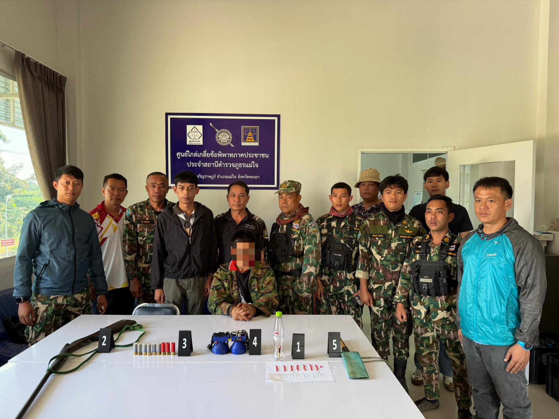 6 ธันวาคม 2568 นายสรายุทธ แก้วเสน ผู้ช่วยหัวหน้าอุทยานแห่งชาติดอยหลวง นำกำลังสายตรวจ อุทยานแห่งชาติออกลาดตระเวนป้องกันปราบปรามการกระทำผิดกฎหมายในพื้นที่จุดเสี่ยงลักลอบล่าสัตว์ป่า บริเวณป่าด้านทิศตะวันตก ท้องที่ บ.ปางปูเลาะ ม.13 ต.ศรีถ้อย อ.แม่ใจ จ.พะเยา ตรวจพบการกระทำผิด จำนวน 1 ราย พร้อมตรวจยึดของกลางประกอบด้วย 1. อาวุธปืนลูกซองยาว (ไม่มีหมายเลขทะเบียน) จำนวน 1 กระบอก 2. กระสุนปืนลูกซอง จำนวน 9 นัด 3. ยาเสพติดให้โทษประเภท 1(ยาบ้า) จำนวน 73 เม็ด 4. ไฟฉายคาดศรีษะ จำนวน 2 ดวง 5. มีดพร้อมฝัก จำนวน 1 เล่ม