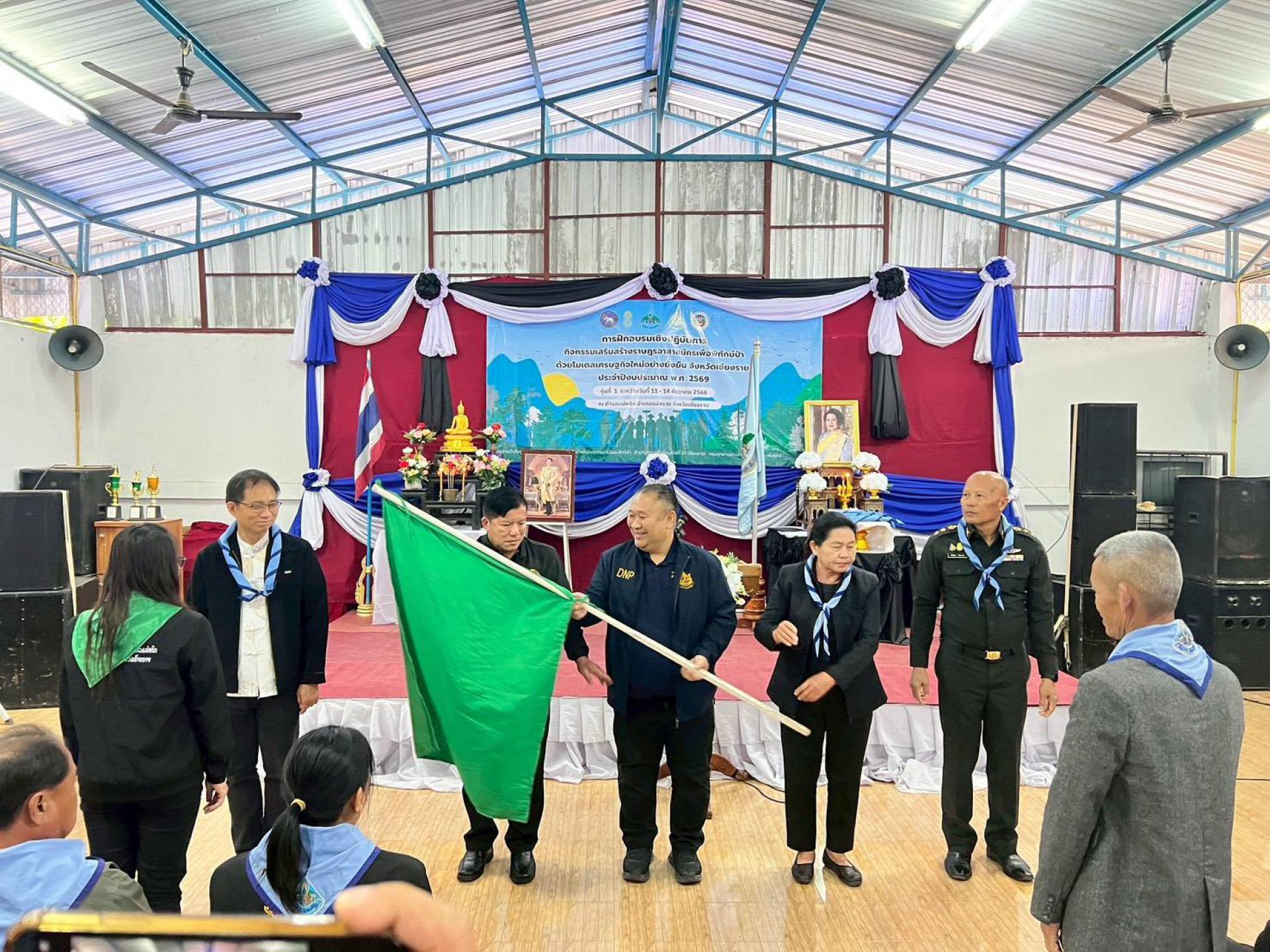 12 ธันวาคม 2568 เวลา 09.00 น. นายเจษฎา เงินทอง ผู้อำนวยการสำนักบริหารพื้นที่อนุรักษ์ที่ 15 เข้าร่วมพิธีเปิดการฝึกอบรมเชิงปฏิบัติการ กิจกรรมเสริมสร้างราษฎรอาสาสมัครเพื่อพิทักษ์ป่าด้วยโมเดลเศรษฐกิจใหม่อย่างยั่งยืน จังหวัดเชียงราย รุ่นที่ 1 ระหว่างวันที่ 11 - 14 ธันวาคม 2568 โดยมีนายปฤษฎางค์ สามัคคีนิชย์ นายอำเภอแม่สรวย เป็นประธานในพิธีเปิดการฝึกอบรม และมีนายพงษ์ประพันธ์ บัณฑิตศศิกุล ผู้อำนวยการส่วนประสานความร่วมมือด้านทรัพยากรป่าไม้และสัตว์ป่า สำนักบริหารพื้นที่อนุรักษ์ที่ 15 (เชียงราย) เป็นผู้กล่าวรายงาน ณ อาคารอเนกประสงค์บ้านโฮ่ง หมู่ที่ 10 ตำบลแม่พริก อำเภอแม่สรวย จังหวัดเชียงราย