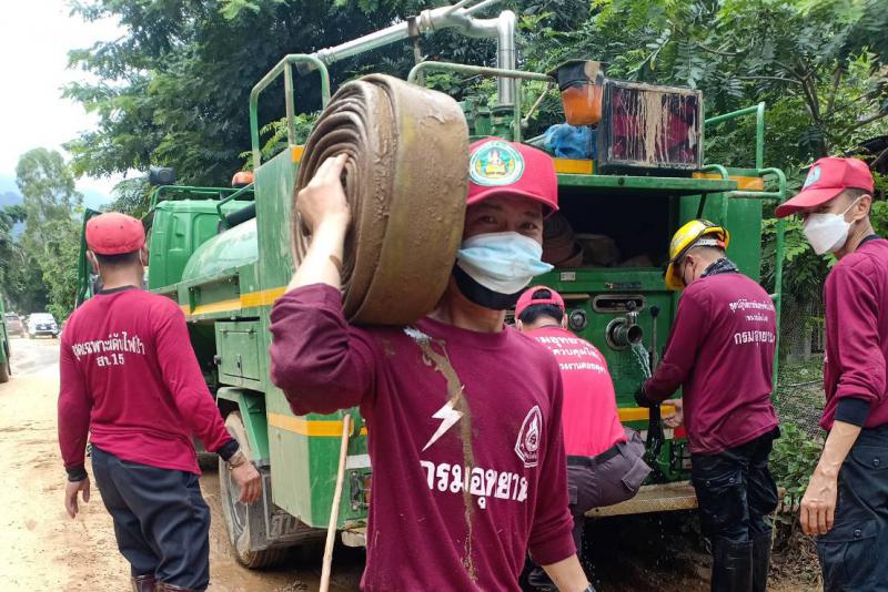 12 สิงหาคม 2564 หัวหน้าและเจ้าหน้าที่สถานีควบคุมไฟป่าพื้นที่ทรงงานดอยตุงฯ นำรถบรรทุกน้ำขนาด 4,000 ลิตร เข้าให้การช่วยเหลือราษฎรบ้านอาข่าสันเกล็ดทอง ม.7 ต.โป่งงาม อ.แม่สาย จ.เชียงราย กรณีประสบภัยพิบัติน้ำป่าไหลหลาก ร่วมกับศูนย์ปฏิบัติการไฟป่าเชียงราย/อุทยานแห่งชาติถ้ำหลวง - ขุนน้ำนางนอน/องค์การบริหารส่วนจังหวัดเชียงรายและฝ่ายปกครอง อำเภอแม่สาย