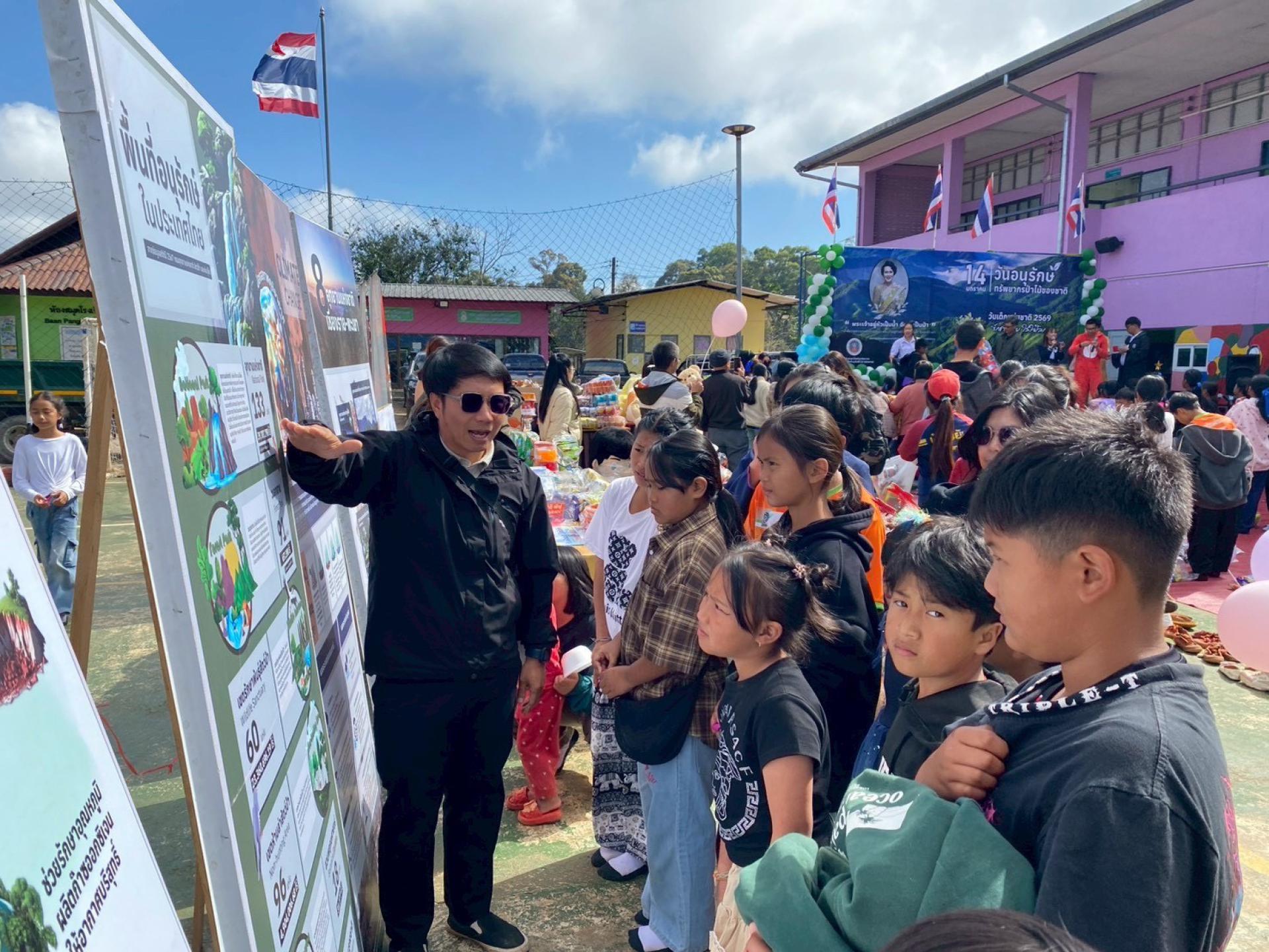 9 มกราคม 2569 เวลา 08.30 - 12.00 น. สำนักบริหารพื้นที่อนุรักษ์ที่ 15 (เชียงราย) โดยส่วนอนุรักษ์และป้องกันทรัพยากร ได้จัดงานวันอนุรักษ์ทรัพยากรป่าไม้แห่งชาติ ประจำปีงบประมาณ พ.ศ.2569 ร่วมกับโรงเรียนบ้านปางขอน ในงานวันเด็กแห่งชาติ ณ โรงเรียนบ้านปางขอน ต.ห้วยชมภู อ.เมืองเชียงราย จ.เชียงราย โดยมีนายวิจิตร มิตรรวมเสรี ผู้อำนวยการส่วนอนุรักษ์และป้องกันทรัพยากร ผู้แทนผู้อำนวยการสำนักบริหารพื้นที่อนุรักษ์ที่ 15 เป็นประธานในพิธี ในการนี้ มีนักเรียนระดับชั้นอนุบาลจนถึงชั้นม.3 จำนวน 200 คน เข้าร่วมกิจกรรม เพื่อเผยแพร่ประชาสัมพันธ์ รณรงค์ปลูกจิตสำนึก และสร้างความตระหนักถึงความสำคัญของทรัพยากรป่าไม้ ดังนี้ - จัดบอร์ดนิทรรศการ ความรู้ด้านทรัพยากรป่าไม้และสัตว์ป่า - การตอบคำถาม ตลอดจนนันทนาการต่างๆ - แจกอุปกรณ์การเรียน ของรางวัล ให้แก่ผู้เข้าร่วมกิจกรรม -การแจกของ ปฎิทิน สมุดฉีก ขนม ไอศกรีม แก่ผู้ร่วมงาน ทั้งนี้ ได้รับการสนับสนุนของรางวัลและสิ่งของต่างๆ จากผู้อำนวยการสำนักบริหารพื้นที่อนุรักษ์ที่ 15 โครงการสถานีพัฒนาเกษตรที่สูง ตามพระราชดำริฯ บ้านปางขอน ส่วนควบคุมและปฎิบัติการไฟป่า ส่วนอนุรักษ์สัตว์ป่า ส่วนประสานความร่วมมือด้านทรัพยากรป่าไม้และสัตว์ป่า ส่วนอำนวยการ กลุ่มงานกฎหมาย ศูนย์ปฎิบัติการไฟป่าเชียงราย อุทยานแห่งชาติภูซาง เขตห้ามล่าสัตว์ป่าแม่จัน รวมถึงกำลังพลเจ้าหน้าที่จากสถานีไฟป่าลำน้ำกก และอุทยานแห่งชาติลำน้ำกก (เตรียมการ)