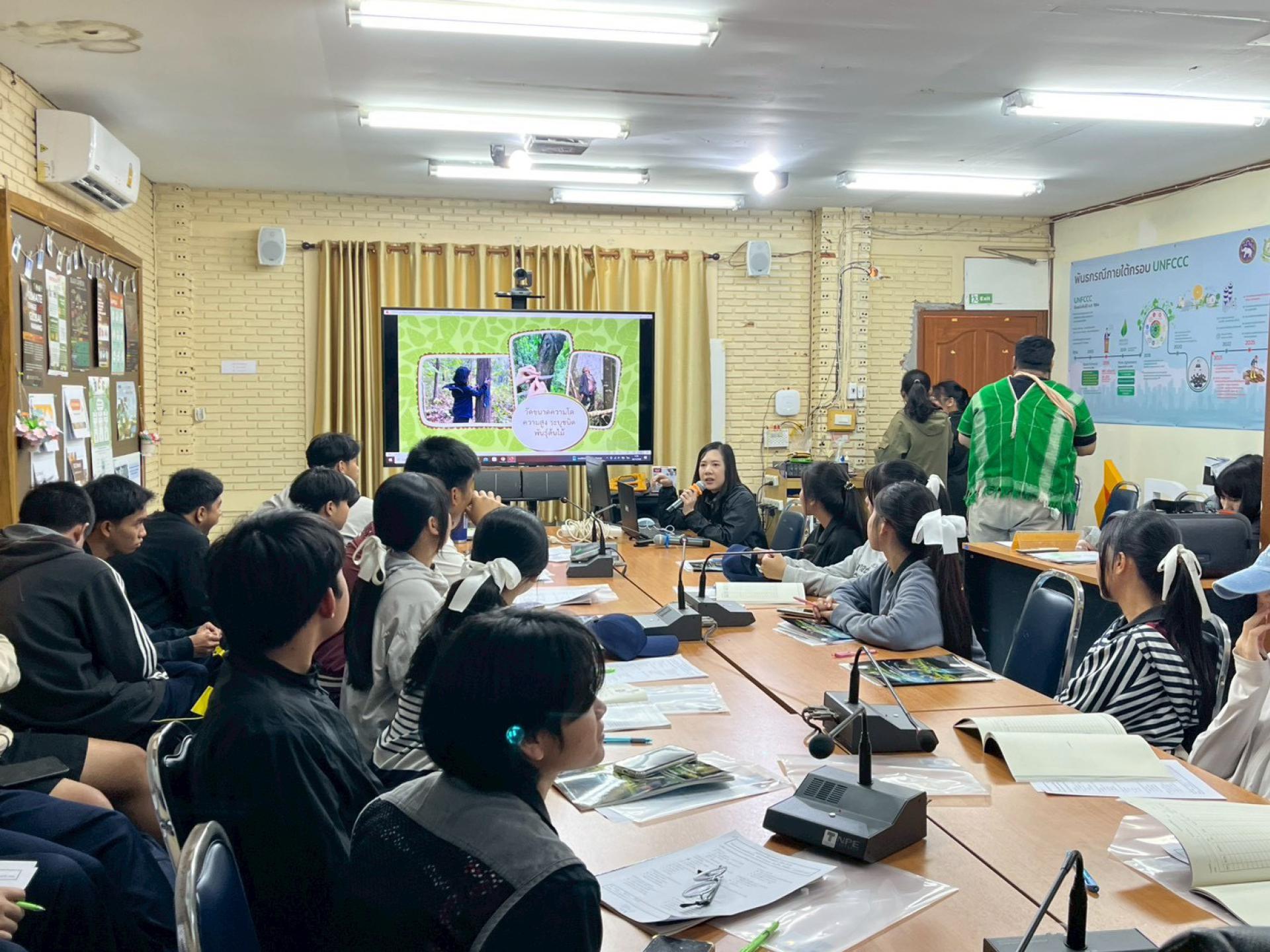 19 มกราคม 2569 เวลา 08.30 น. นางสาวพลอยรริน เชื้อเมืองพาน นักวิชาการป่าไม้ปฏิบัติการ พร้อมด้วยนางสาววิลาวัณย์ อินไชย นักวิชาการป่าไม้ นางสาววศินี ดีมาก นักวิชาการป่าไม้ และคณะเจ้าหน้าที่กลุ่มงานวิชาการ สำนักบริหารพื้นที่อนุรักษ์ที่ 15 (เชียงราย) เข้าร่วมเป็นวิทยากรเพื่อให้ความรู้เรื่อง หลักการสำรวจพรรณไม้ ชื่อวิทยาศาสตร์ ลักษณะทางพฤกษศาสตร์ การวางแปลงสำรวจ การวัดขนาดโต ความสูง การวางแปลงและการสำรวจพรรณไม้ในพื้นที่ แก่เด็กนักเรียนโรงเรียนสามัคคีวิทยาคม จังหวัดเชียงราย ในกิจกรรมอบรมเครือข่าย “ENVI School โรงเรียนรักษ์โลก” ประจำปี 2569 ภายใต้ โครงการสร้างความร่วมมือด้านทรัพยากรธรรมชาติและสิ่งแวดล้อมในระดับพื้นที่ เพื่อรองรับการเปลี่ยนแปลงสภาพภูมิอากาศ ณ สำนักงานทรัพยากรธรรมชาติและสิ่งแวดล้อมจังหวัดเชียงราย อ.เมือง จ.เชียงราย โดยมีนายองอาจ คณุตม์วงศ์ ผู้อำนวยการสำนักงานทรัพยากรธรรมชาติและสิ่งแวดล้อมจังหวัดเชียงราย เป็นประธาน