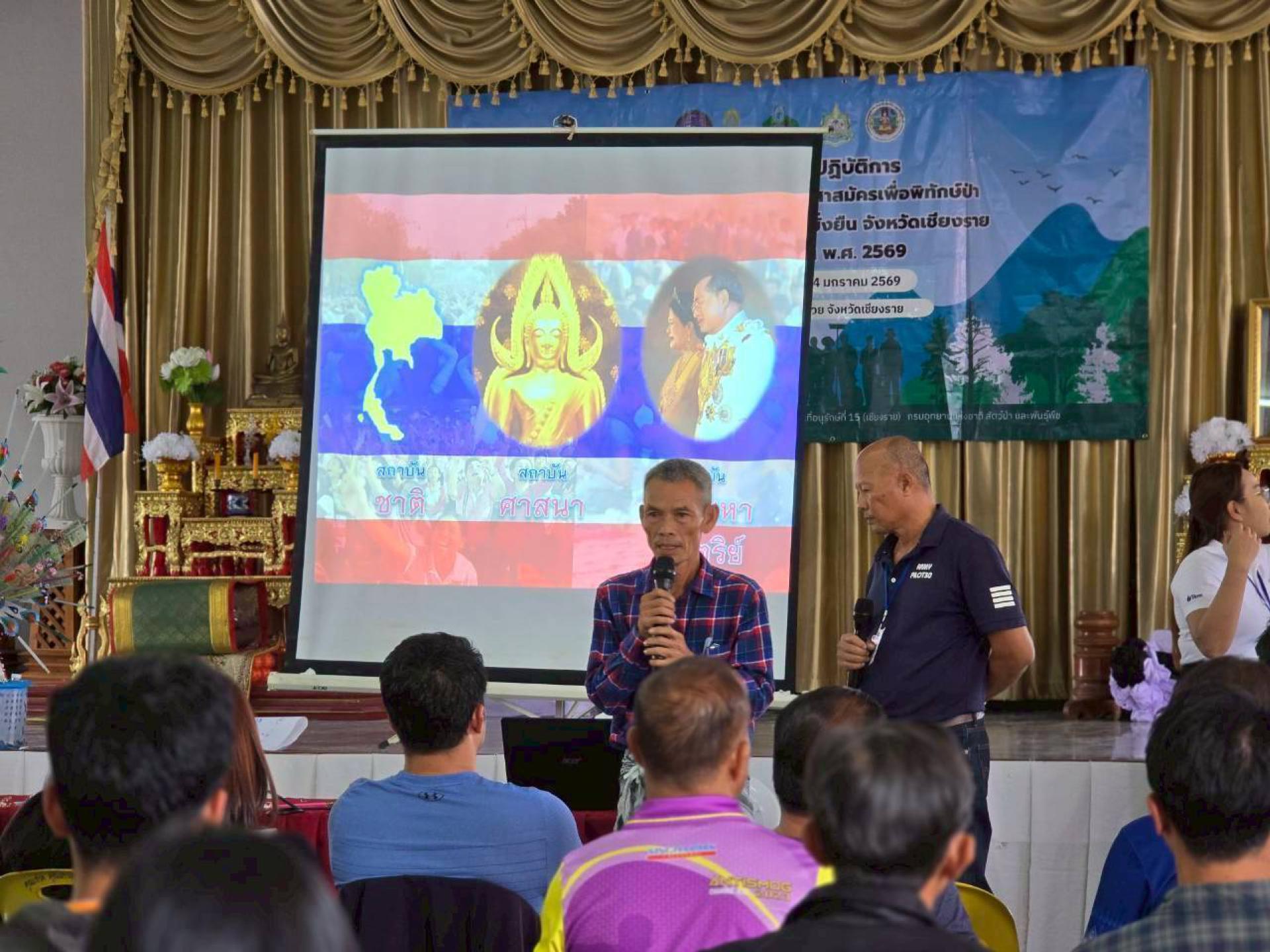 24 มกราคม 2569 ส่วนประสานความร่วมมือด้านทรัพยากรป่าไม้และสัตว์ป่า สำนักบริหารพื้นที่อนุรักษ์ที่ 15 (เชียงราย) สรุปผลการปฏิบัติงาน การจัดการฝึกอบรมเชิงปฏิบัติการ กิจกรรมเสริมสร้างราษฎรอาสาสมัครเพื่อพิทักษ์ป่าด้วยโมเดลเศรษฐกิจใหม่อย่างยั่งยืน จังหวัดเชียงราย รุ่นที่ 4 ระหว่างวันที่ 21–24 มกราคม 2569 ณ อาคารปฏิบัติธรรมรัตนบัณฑิตศิริสมบูรณ์ ตำบลป่าแดด อำเภอแม่สรวย จังหวัดเชียงราย โดยมีราษฎรในพื้นที่เข้าร่วมการฝึกอบรม จำนวน 100 คน วันที่ 22 มกราคม 2569 นายจิตกร คูสินไทย ปลัดอำเภอฝ่ายความมั่นคง อำเภอแม่สรวย เป็นประธานในพิธีเปิดการฝึกอบรม โดยมีหน่วยงานฝ่ายปกครองท้องถิ่น นำโดย นายสมพงษ์ อินต๊ะชัยวงค์ กำนันตำบลป่าแดด ผู้แทนจากสถานีตำรวจภูธรอำเภอแม่สรวย และผู้แทนหน่วยงานภาคสนาม ได้แก่ นายปัณณวัฒน์ ไชยภักษา หัวหน้าโครงการบ้านเล็กในป่าใหญ่ตามพระราชดำริ บ้านห้วยหญ้าไซ จังหวัดเชียงราย ร่วมเป็นเกียรติในพิธีเปิด การฝึกอบรมดำเนินไปตามกำหนดการและเสร็จสิ้นในวันที่ 24 มกราคม 2569 โดยมี นายธารางกูร สุภาวงค์ ปลัดอาวุโสอำเภอแม่สรวย เป็นประธานในพิธีปิด