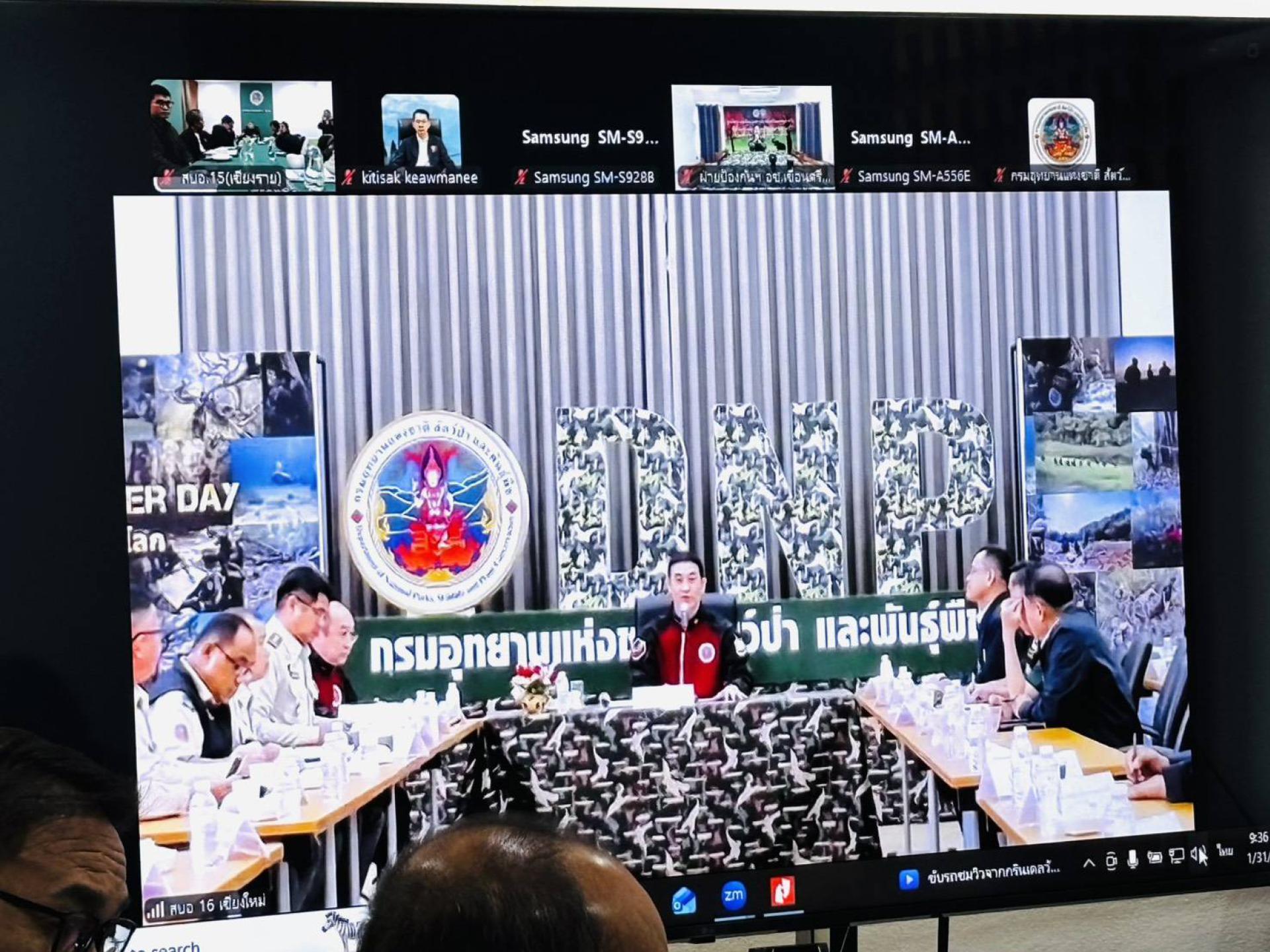 31 มกราคม 2569 เวลา 09.30 น. นายเจษฎา เงินทอง ผู้อำนวยการสำนักบริหารพื้นที่อนุรักษ์ที่ 15เข้าร่วมประชุมคณะทำงานศูนย์ปฏิบัติการเฝ้าระวังควบคุมไฟป่าและหมอกควันในพื้นที่ 14 กลุ่มป่า พร้อมด้วยผู้อำนวยการส่วน หัวหน้ากลุ่มงาน และหัวหน้าหน่วยงานภาคสนาม ของกลุ่มป่าที่ 2 กลุ่มป่าศรีลานนา - แม่ลาว โดยมี นายอรรถพล เจริญชันษา อธิบดีกรมอุทยานแห่งชาติ สัตว์ป่า และพันธุ์พืช เป็นประธานการประชุม ซึ่งการประชุมครั้งนี้ได้กล่าวถึงการจัดตั้งศูนย์ปฏิบัติการแก้ไขปัญหาไฟป่าหมอกควัน การจัดตั้งศูนย์อำนวยการป้องกันแก้ไขปัญหาไฟป่าหมอกควันและฝุ่นละออง พร้อมทั้งการนำเสนอการเตรียมความพร้อมในการรับมือกับสถานการณ์ไฟป่าของแต่ละพื้นที่กลุ่มป่าซึ่งมีทั้งหมด 14 กลุ่มป่า ผ่านระบบ Video Conference ณ ห้องประชุม 3 สำนักบริหารพื้นที่อนุรักษ์ที่ 15 (เชียงราย) อำเภอเมืองเชียงราย จังหวัดเชียงราย