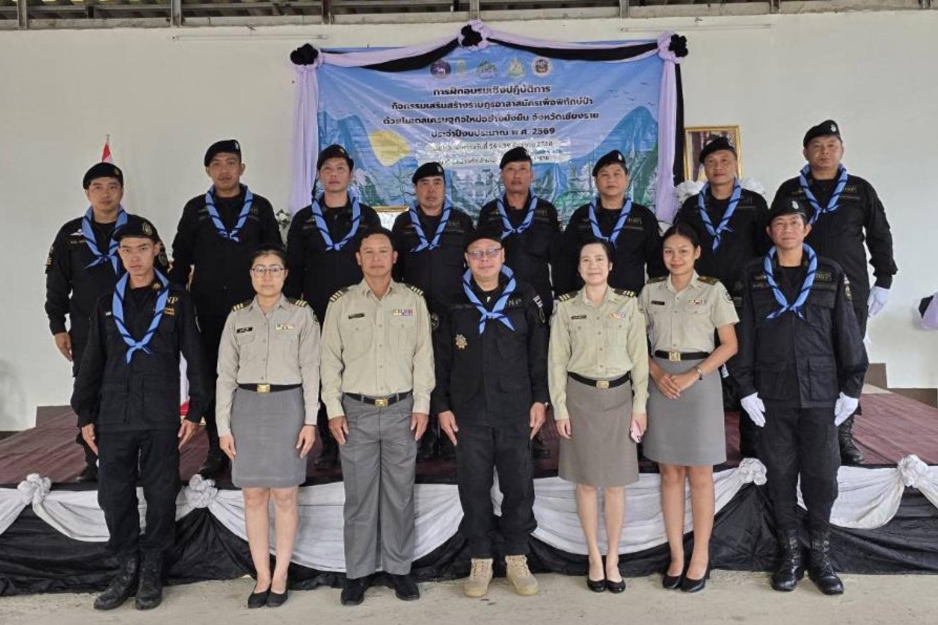 17 ธันวาคม 2568 เวลา 08.00 น. นายปาวิณ ไวว่อง หัวหน้าสายตรวจปราบปรามประจำสำนักบริหารพื้นที่อนุรักษ์ที่ 15 (เชียงราย) พร้อมด้วยคณะเจ้าหน้าที่ส่วนอนุรักษ์และป้องกันทรัพยากร เข้าร่วมพิธีเปิดและพิธีอัญเชิญธงพระราชทาน “พิทักษ์ป่า เพื่อรักษาชีวิต” การฝึกอบรมเชิงปฏิบัติการ กิจกรรมเสริมสร้างราษฎรอาสาสมัครเพื่อพิทักษ์ป่าด้วยโมเดลเศรษฐกิจใหม่อย่างยั่งยืน จังหวัดเชียงราย ณ ป่าชุมชนบ้านร่องบอน หมู่ที่ 12 ตำบลม่วงคำ อำเภอพาน จังหวัดเชียงราย โดยมี นายอุดม ปกป้องบวรกุล นายอำเภอพาน จังหวัดเชียงราย เป็นประธานในพิธี